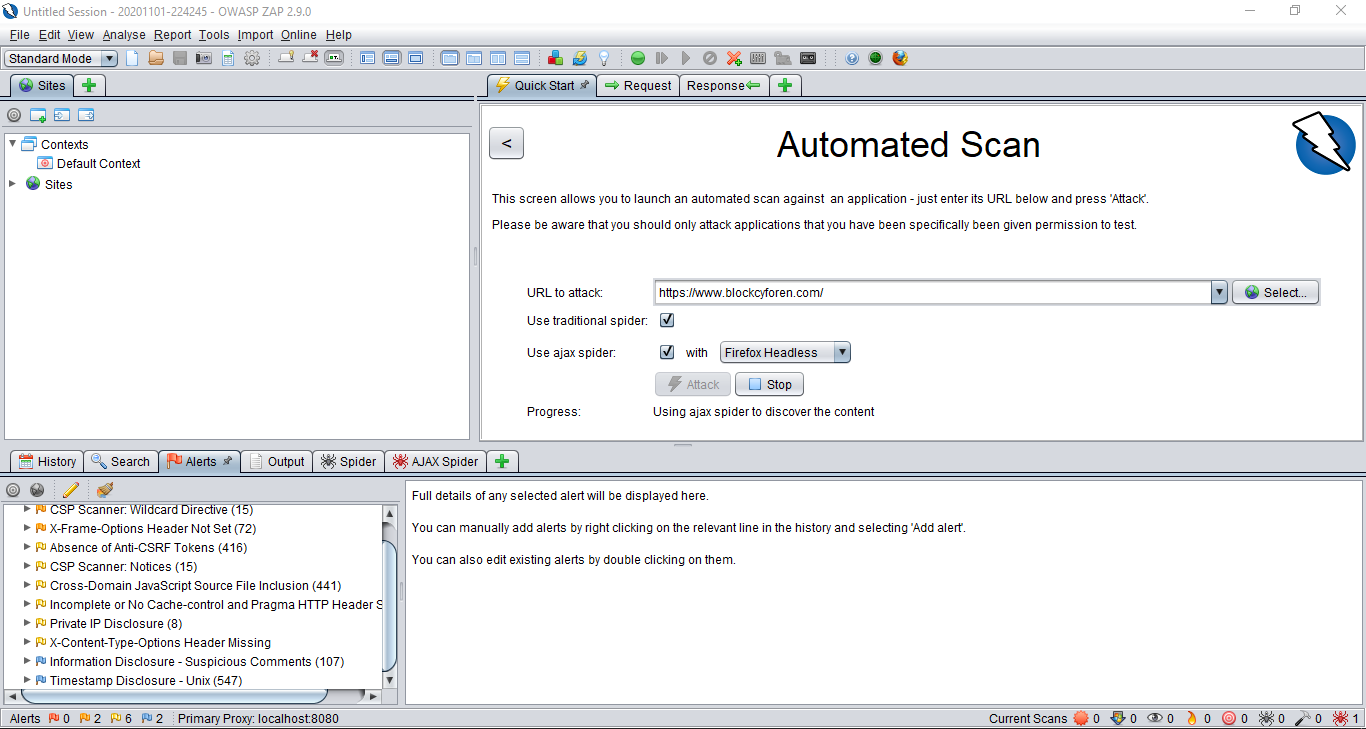 ZAP çalıştıktan sonra karşımıza,