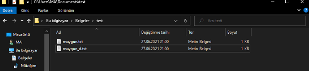 - Test amaçlı 2 txt dosyasını oluşturdum1 tanesine Time Stomping uygulayacağım bir tanesinide taririhndeki değerleri göreceğim