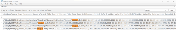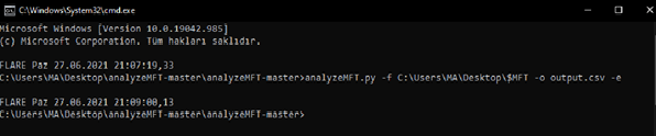 MFTanalyese tool sayesin outout.csv şeklinde bir çıktım aldım.