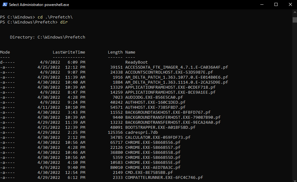 Microsoft tarafından Windows sistemlerde uygulamaları daha hızlı başlatmak adına çalıştırılan her uygulama için Preftech dosyası oluşturmaktadır. Böylelikle sistemleri daha hızlı hale getirmek amaçlanmıştır. Yani Prefetch, sistemde sık kullanılan ve erişilen verileri kullanıcı için daha hızlı hale getirmek için önbelleğe alarak kullanıcı deneyimini iyileştirmeyi amaçlamıştır. Preftech dosyaları ister GUI ve CLI olsun sistemde çalıştığında otomatik bir şekilde oluşmaktadır. Preftech dosyaları *.pf dosya uzantısına sahiptir. Preftech dosyaları, dosya adı, dosya yolu, programın kaç kez çalıştırıldığı, programın son çalıştırılma zamanı, program tarafından kullanılan DLL’lerin listesi gibi bilgileri içinde tutar.