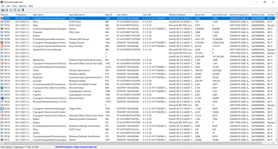 NetworkUsageView, NirSoft tarafından geliştirilen ve Windows işletim sistemi için tasarlanmış bir araçtır. Bu yazılım, Windows’un dahili ‘Network Data Usage’ (Ağ Veri Kullanımı) günlüklerini okuyarak, sistemdeki uygulamalar tarafından gerçekleştirilen ağ etkinliklerini analiz etmenize olanak tanır. Özellikle, Windows 8 ve üzeri sürümlerde ağ kullanımını incelemek için oldukça faydalıdır.