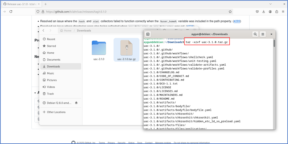 UAC ile canlı toplama yaptıktan sonra topladığınız verilerin bulunduğu *.tar.gz dosyasını hedef sistemden almanız gerekecek. Bu dosya, topladığınız artefaktları içerir ve genellikle analiz için başka bir sisteme kopyalanabilir. İşte bu süreçte dikkate almanız gereken bazı adımlar. Sonuçların analizi, topladığınız verilerin kapsamına ve hedef sistemin özelliklerine göre değişebilir. Bu süreci doğru yönetmek, güvenli bir inceleme yapmak ve potansiyel kanıtları doğru şekilde değerlendirmek için önemlidir.